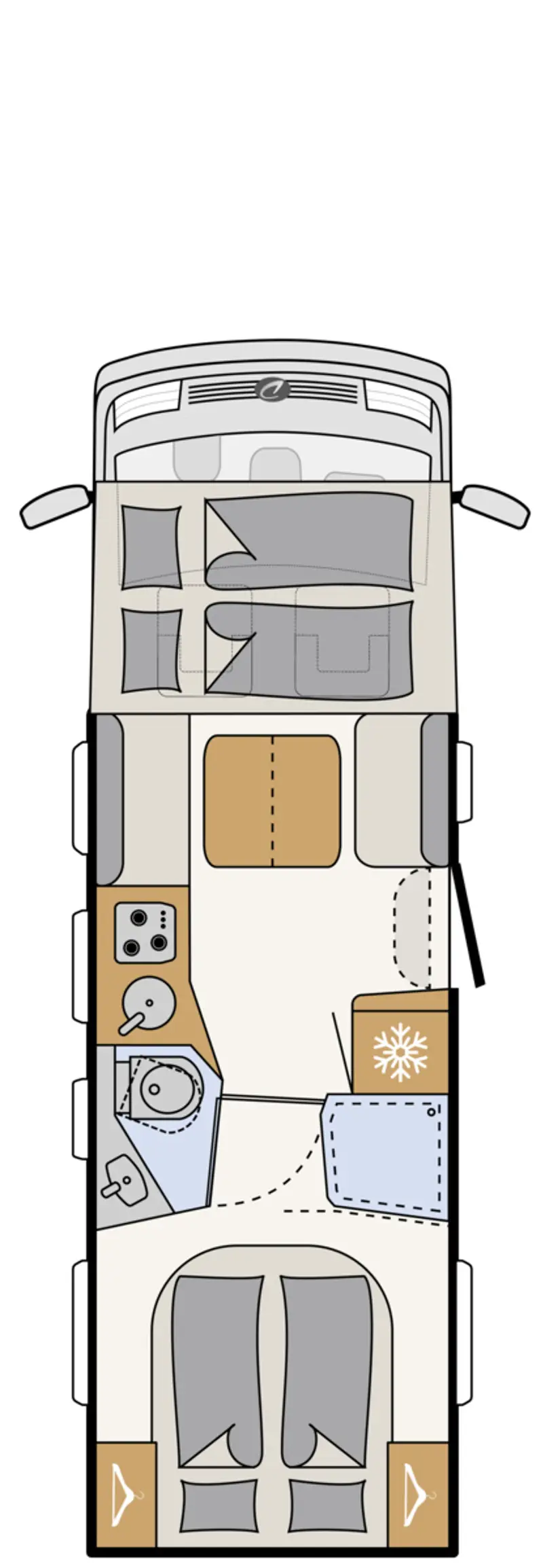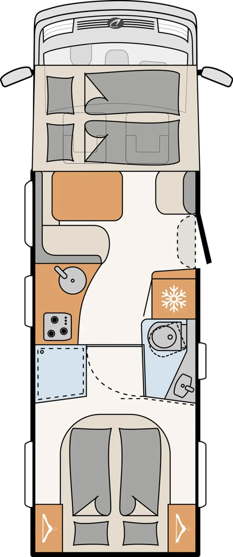 - Perfectly winterised thanks to double-floor technology and frost-proof water system