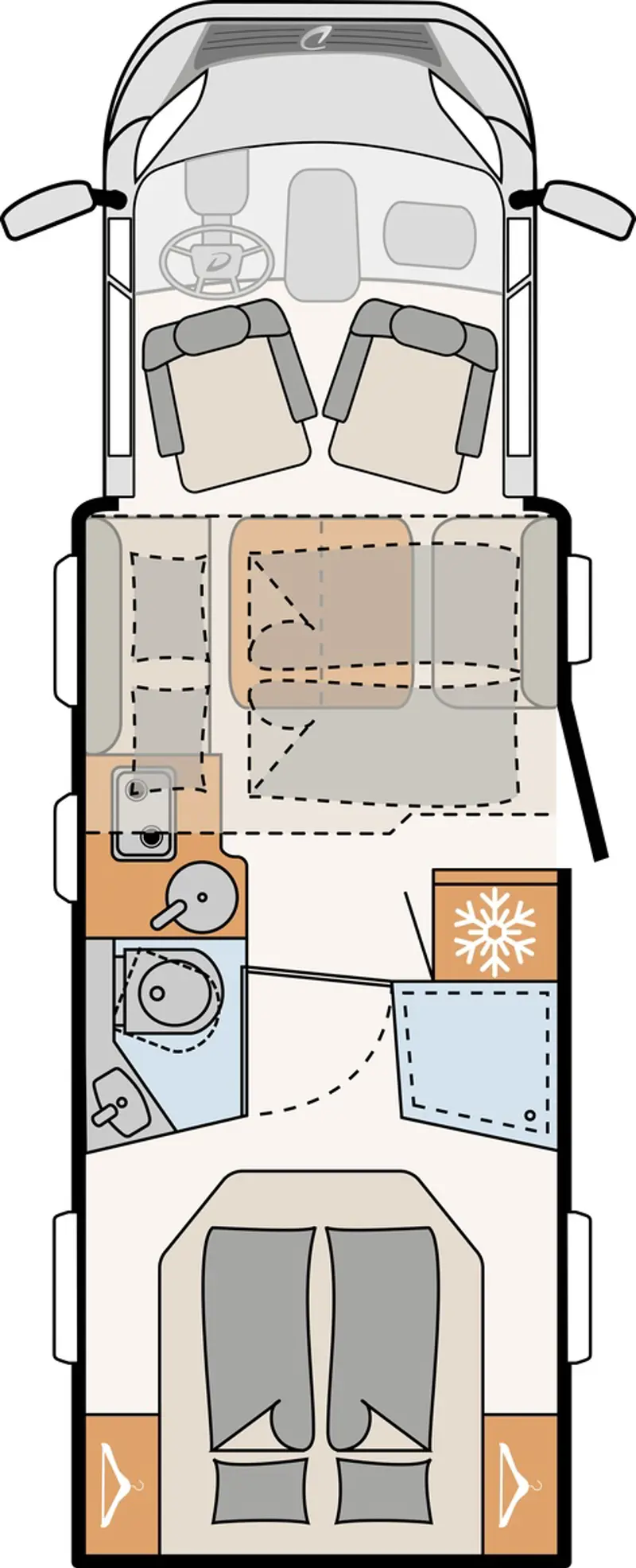 - Airy 213 cm interior headroom (not under the pulldown bed)