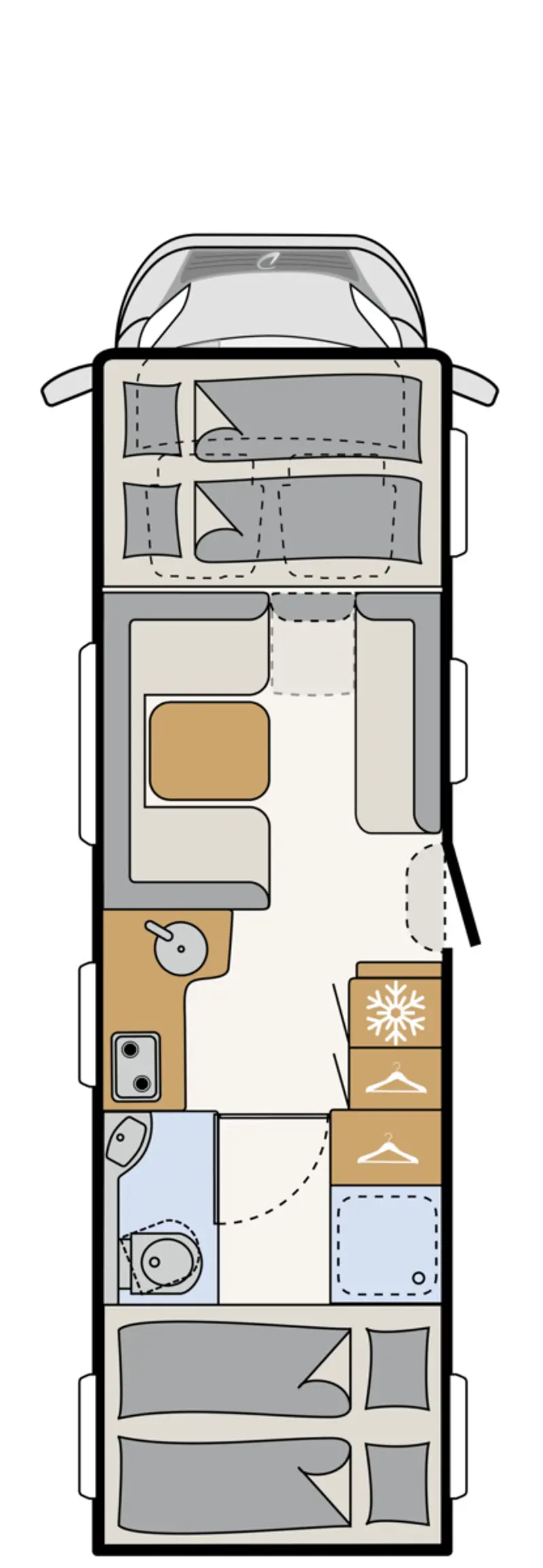 - LifeTime-Plus bodywork construction, wood-free with GRP-clad underfloor and roof