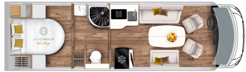 The elegant curves and harmonious lines from the front to the rear of the vehicle lend a dynamic appearance to your Le Voyageur motorhome. The interior design is clean and functional, while the noble materials and the impeccable finish are the hallmarks of a top-of-the-range vehicle.