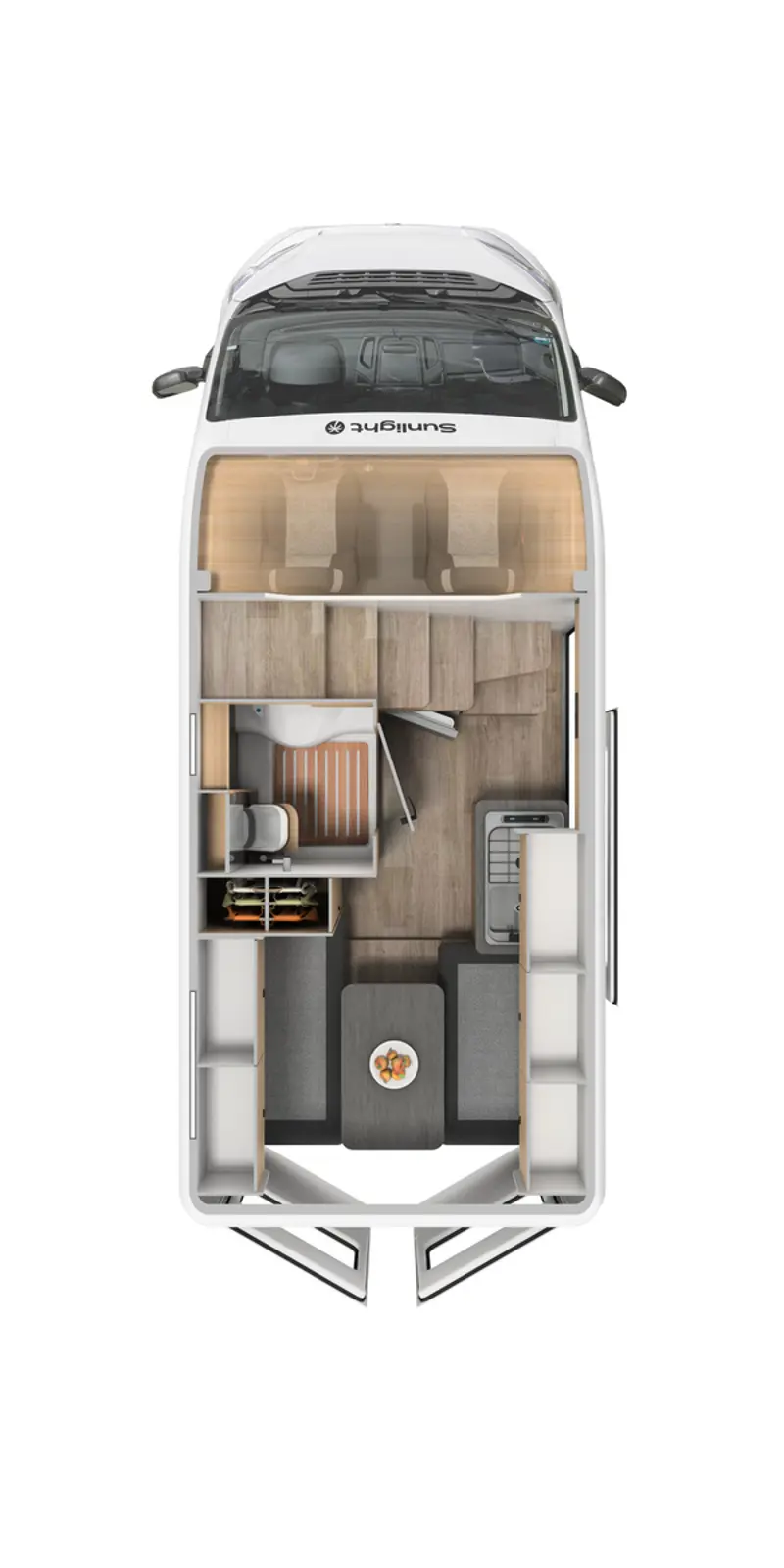 Unlike any other! With its pop-up roof, expansive living area, and separate cab, the CLIFF Vanlife offers a whole new take on traditional layouts. Despite its compact size, the new design delivers an exceptional feeling of spaciousness. Perfect for those who love to travel for longer.